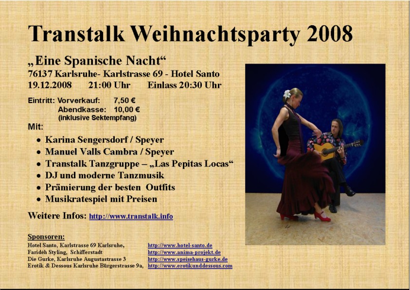 Schon lange Tradition veranstaltete der Transtalk Karlsruhe auch in diesem Jahr wieder seine weit über die Grenzen Baden Württembergs hinaus bekannte Transtalk Weihnachts- Party.