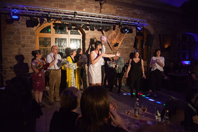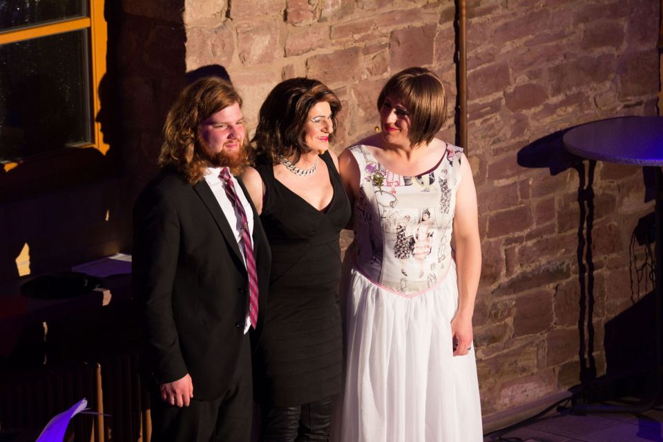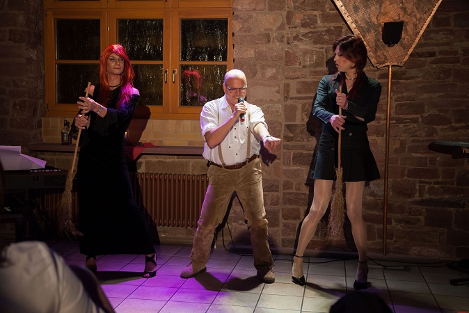 So konnte Zaza pünktlich die Moderation des Abends beginnen und wäre auch sicher gut vorwärts gekommen, wenn nicht die allseits beliebte und charmante Barbara-Charlotte-Babette Sonnenschein, genannt Babsy, mitten in die Moderation geplatzt wäre. So musste sich Zaza durch eine kontroverse Kommunikation kämpfen um Frau Sonnenschein von der Showbühne zu drängen und wieder das Zepter in die Hand zu nehmen und unflädliche Zwischenrufe unseres Losverkäufers Günther gekonnt überspielen, um den ersten Höhepunkt des Abends anzukündigen.