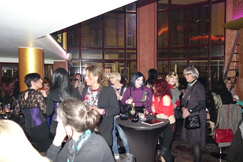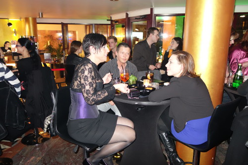 Derweilen kümmerte ich mich um unsere neuen Gäste, die schon dachten Sie wären hier auf der falschen Veranstaltung, da selbst um 21Uhr noch sehr wenig „Mädels“ im Santo waren. Aber nach der SHG füllte sich das Foyer des Hotel Santo ruck zuck und so stieg der Cocktail Konsum um 22Uhr schlagartig an und unser Bar Team hatte alle Hände voll zu tun, die vielen durstigen Jungs und Mädels schnell zufrieden zu stellen. Die Stimmung war locker und ausgelassen und es waren wieder sehr viele Bekannte Gesichter und Stammgäste hier. Besonders gefreut hat mich natürlich, dass wir zwischenzeitlich überregional so bekannt sind, dass auch viele neue Gesichter auszumachen waren, die sich das erste mal zu uns getraut hatten. Und da wir ja alle sehr offen und herzlich sind, haben sich unsere Besucher nach kurzer Zeit bei uns pudelwohl gefühlt. Auch die normalen Gäste des Hotel Santo gesellten sich schnell zu den vielen TV/TS, so dass bald eine bunte Mischung entstand in der sehr viel interessiert gefragt und auch Aufklärungsarbeit über uns geleistet wurde. Alles in allem entstanden so sehr viel lange und intensive Gespräche und viele der normalen Gäste kamen zu dem Schluss… „Mensch die beißen wirklich nicht!“
